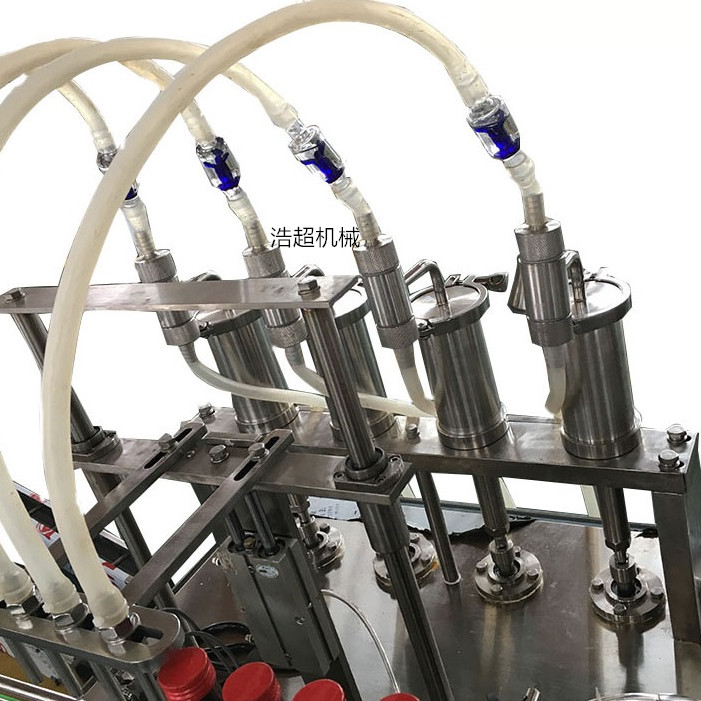 浩超生產(chǎn)的膏體灌裝機(jī)使用微電腦控制,光電跟蹤糾編系統(tǒng),同時(shí)配用高精度步進(jìn)電機(jī),控制系統(tǒng)完成整機(jī)的同步,定位、定長(zhǎng)、及速度,灌裝準(zhǔn)確不滴漏,提高了生產(chǎn)力且操作簡(jiǎn)單。適用于各類不同形狀容器如玻璃瓶、PET等塑料瓶的灌裝,可根據(jù)客戶的瓶子非標(biāo)定制。
