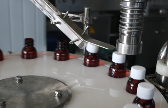 本機(jī)為10-20ML的口服液灌裝封口而設(shè)計(jì),是口服液灌裝生產(chǎn)線(xiàn)中的灌裝主機(jī),用于易拉直管瓶的灌裝、上蓋、封口。采用注射泵灌裝,電磁振動(dòng)自動(dòng)送蓋,三刀離心式軋蓋(或旋蓋),具有無(wú)瓶不灌裝的功能。該機(jī)灌裝和封口合二為一,設(shè)計(jì)合理,結(jié)構(gòu)緊湊,易于操作與維護(hù),符合GMP要求。