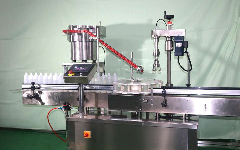 本設(shè)備是液體生產(chǎn)線中的灌裝旋蓋主機,主要用于玻璃瓶或塑料瓶的灌裝、上蓋、旋蓋,采用直線式或者圓盤定位式灌裝,泵體采用柱塞泵,電磁振動送蓋,升降式旋蓋,具有無瓶不灌功能,無瓶不上蓋,該機灌裝和旋、蓋合二為一,結(jié)構(gòu)緊湊,操作簡單等優(yōu)點,符合GMP標(biāo)準(zhǔn)。
