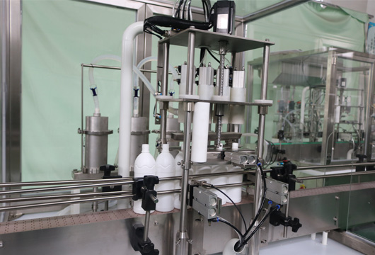 簡要描述:84液體噴霧劑灌裝機(jī) 特點(diǎn):鼻噴劑口腔噴霧灌裝生產(chǎn)線由供瓶、灌裝、上內(nèi)塞、外蓋、旋蓋、貼標(biāo)等主要部分組成。通過全自動(dòng)理瓶機(jī)或供瓶機(jī)把瓶子輸送到光眼檢測處,然后進(jìn)行灌裝,震蕩盤理蓋上蓋后旋蓋,工序完成后可加貼標(biāo)機(jī)、打碼機(jī),再送出到收瓶機(jī)。