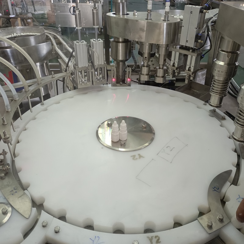 本生產(chǎn)線由全自動理瓶機,眼藥水灌裝加塞旋蓋機,視覺檢測,檢重秤,貼標機,裝盒機組成,可完成理瓶,灌裝,加塞,旋蓋,檢測,稱重,貼標,裝盒等工序。主要用于眼藥水灌裝及其他小劑量溶液的聯(lián)線生產(chǎn),也可單機獨立使用。