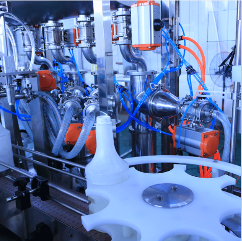 簡要描述:浩超生產蜂蜜液體灌裝機 本機是液體生產線中的灌裝旋(軋)蓋主機,適用于玻璃瓶或者塑料瓶的灌裝、上蓋、封口。采用直線式或圓盤定位式灌裝,電磁振動送蓋,全自動旋(軋)蓋,具有無瓶不灌功能。