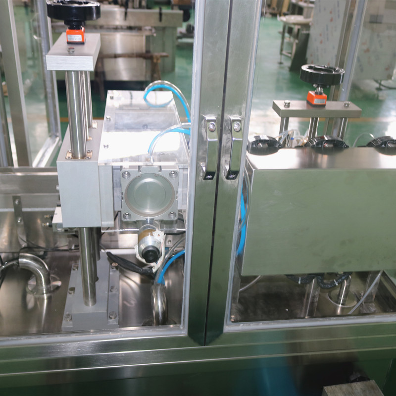 本機適用于2-30ML各種材質(zhì)的圓形扁形塑料或玻璃瓶的眼滴藥水灌裝.本機由高精度凸輪分度機構(gòu)提供分度等分盤定位上塞上蓋;蠕動泵計量灌裝;觸摸屏控制.無瓶不灌裝,具定位準(zhǔn)確,傳動平穩(wěn),保護瓶蓋,計量準(zhǔn)確.操作簡單等優(yōu)點。