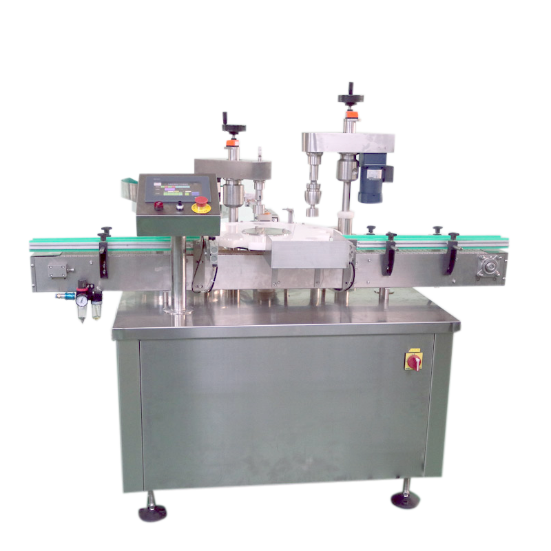 本機(jī)是采用磨擦式旋蓋形式,調(diào)節(jié)方便,旋蓋速度可根據(jù)用戶產(chǎn)量任意調(diào)節(jié),比爪式旋蓋機(jī)提高工作效率三倍。本機(jī)設(shè)計(jì)合理,結(jié)構(gòu)緊湊,旋蓋效率高,瓶蓋不打滑破損,瓶體不拉毛,穩(wěn)定可靠,使用壽命長(zhǎng),操作簡(jiǎn)單、維修方便。符合GMP規(guī)范要求。廣泛適用于醫(yī)藥、食品、化工等行業(yè)。