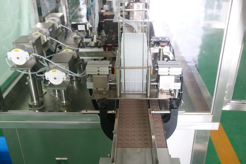 本設(shè)備是根據(jù)客戶的樣品非標定制的六頭深孔板灌裝機,采用蠕動泵計量灌裝,觸控屏控制,人機界面設(shè)定,操作直觀方便、PLC控制,定位式貼膜,加熱式封口,保證封口的牢固、美觀。該設(shè)備具定位準確,灌裝精度高,傳動平穩(wěn),結(jié)構(gòu)緊湊、合理,操作簡單等優(yōu)點。符合GMP要求。