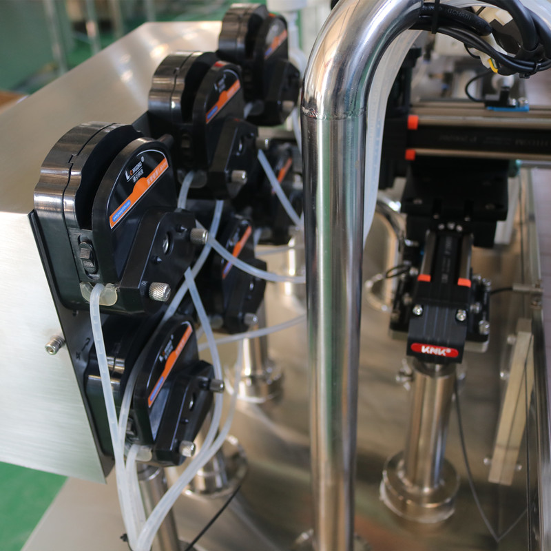 本設(shè)備是根據(jù)客戶的樣品非標定制的六頭深孔板灌裝機,采用蠕動泵計量灌裝,觸控屏控制,人機界面設(shè)定,操作直觀方便、PLC控制,定位式貼膜,加熱式封口,保證封口的牢固、美觀。該設(shè)備具定位準確,灌裝精度高,傳動平穩(wěn),結(jié)構(gòu)緊湊、合理,操作簡單等優(yōu)點。符合GMP要求。