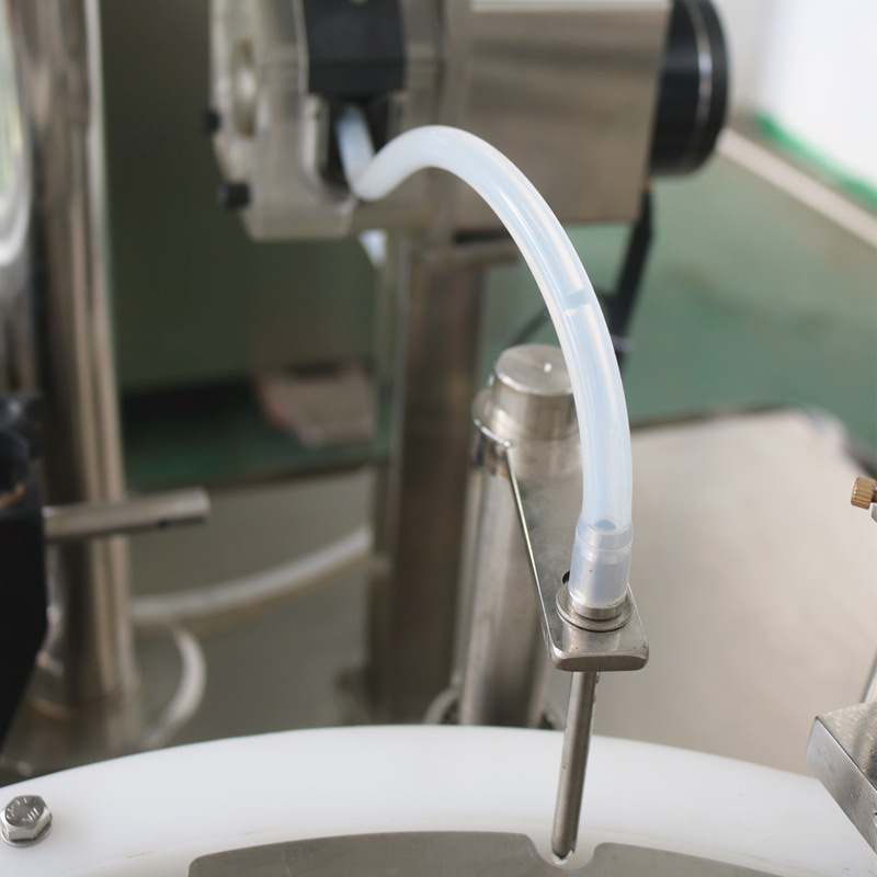 本機適用于2-30ML各種材質的圓形扁形塑料或玻璃瓶的眼部基礎護理液灌裝.本機由高精度凸輪分度機構提供分度等分盤定位上塞上蓋;蠕動泵計量灌裝;觸摸屏控制.無瓶不灌裝,具定位準確,傳動平穩(wěn),保護瓶蓋,計量準確.操作簡單等優(yōu)點。
