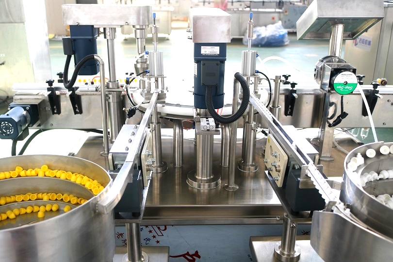 本機(jī)適用于2-30ML各種材質(zhì)的圓形扁形塑料或玻璃瓶的亮眼液灌裝.本機(jī)由高精度凸輪分度機(jī)構(gòu)提供分度等分盤定位上塞上蓋;蠕動(dòng)泵計(jì)量灌裝;觸摸屏控制.無瓶不灌裝,具定位準(zhǔn)確,傳動(dòng)平穩(wěn),保護(hù)瓶蓋,計(jì)量準(zhǔn)確.操作簡(jiǎn)單等優(yōu)點(diǎn)。