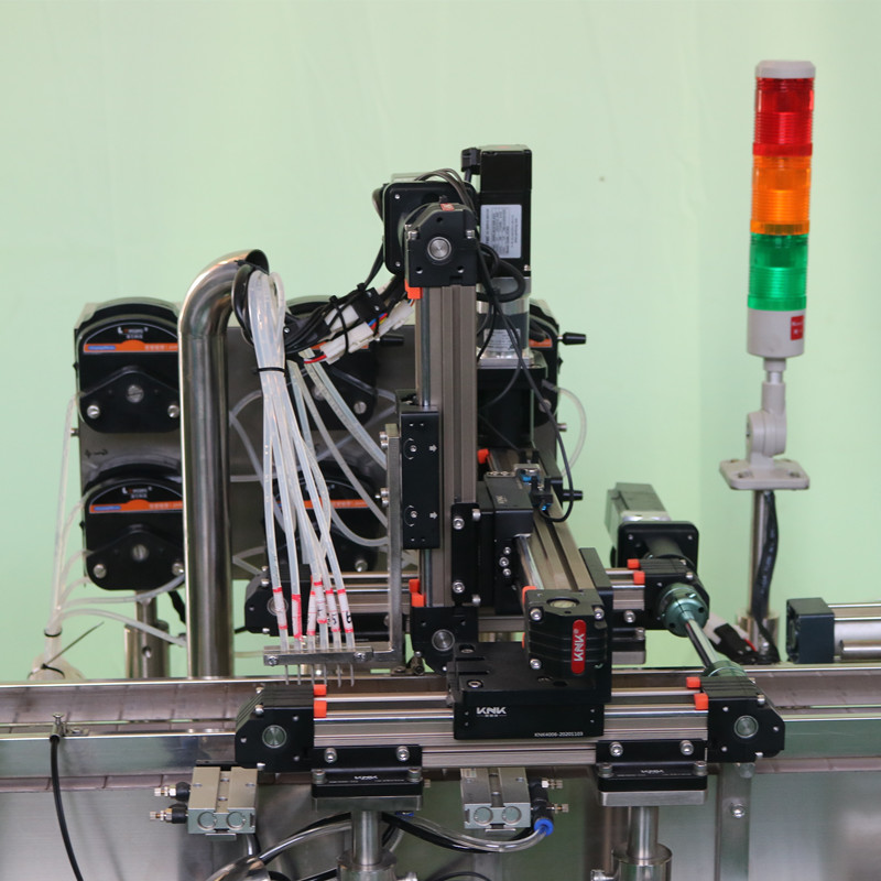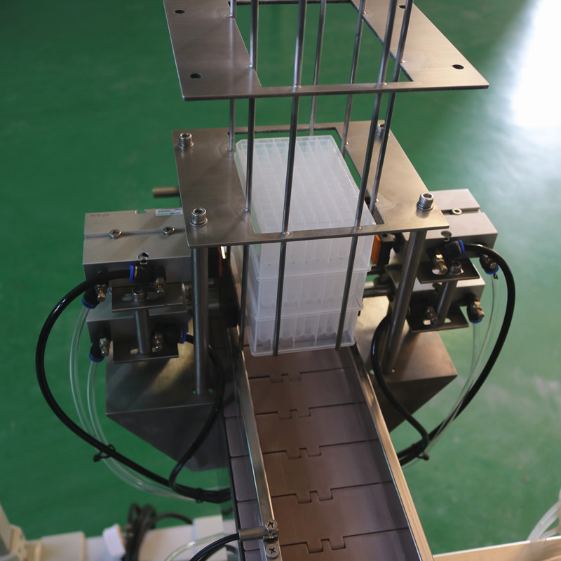 本設備是根據(jù)客戶的樣品非標定制的六頭深孔板灌裝機,采用蠕動泵計量灌裝,觸控屏控制,人機界面設定,操作直觀方便、PLC控制,定位式貼膜,加熱式封口,保證封口的牢固、美觀。該設備具定位準確,灌裝精度高,傳動平穩(wěn),結構緊湊、合理,操作簡單等優(yōu)點。符合GMP要求。