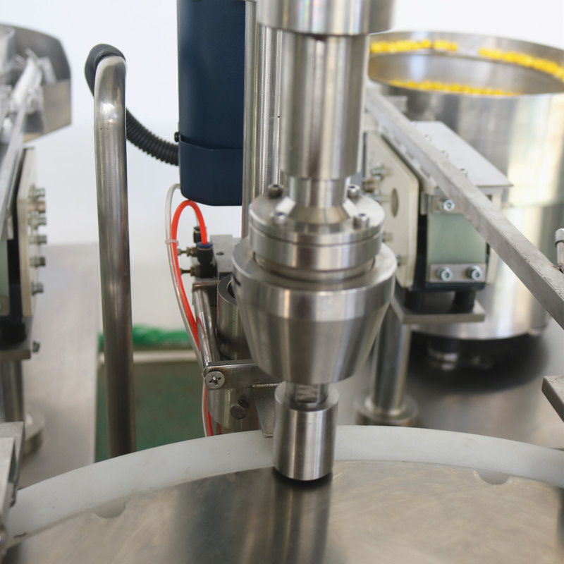 本機適用于2-30ML各種材質(zhì)的圓形扁形塑料或玻璃瓶的愛眼液灌裝.本機由高精度凸輪分度機構(gòu)提供分度等分盤定位上塞上蓋;蠕動泵計量灌裝;觸摸屏控制.無瓶不灌裝,具定位準(zhǔn)確,傳動平穩(wěn),保護瓶蓋,計量準(zhǔn)確.操作簡單等優(yōu)點。