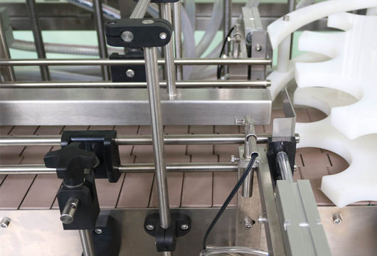 本設(shè)備是液體生產(chǎn)線中的灌裝旋蓋主機(jī),主要用于玻璃瓶或塑料瓶的灌裝、上蓋、旋蓋,采用直線式或者圓盤(pán)定位式灌裝,泵體采用柱塞泵,電磁振動(dòng)送蓋,升降式旋蓋,具有無(wú)瓶不灌功能,無(wú)瓶不上蓋,該機(jī)灌裝和旋、蓋合二為一,結(jié)構(gòu)緊湊,操作簡(jiǎn)單等優(yōu)點(diǎn),符合GMP標(biāo)準(zhǔn)。