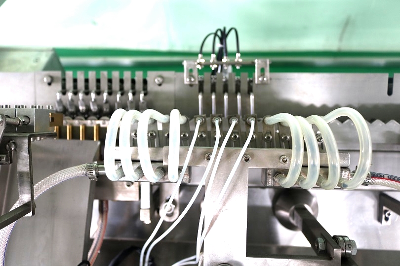 本產(chǎn)品是我公司為滿足客戶的特殊需要所定制的一款設備,它除了繼承舊款安瓿拉絲灌封機的功能和特點外,還大限度地提高了整機的通用性能:只需很少的更換件即可很方便地實現(xiàn)1-5ml安瓿的灌封;另外智能化的控制、輸送鏈、手輪離合裝置以及封閉的外型設計,用戶在調試和生產(chǎn)過程中感覺非常方便、安全。