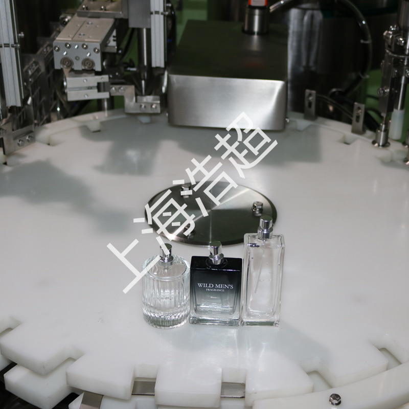 本設備是根據(jù)客戶樣品瓶子量身定制的香水灌裝產(chǎn)品的設備,該機采用高精度封閉式凸輪分度工位器,包裝精度高,機器運行可靠,設備使用壽命長。該分度器結構簡單,長期使用無需維修。PLC控制,采用良好電子元器件與物料接觸地方用316L不銹鋼材料、符合GMP要求。