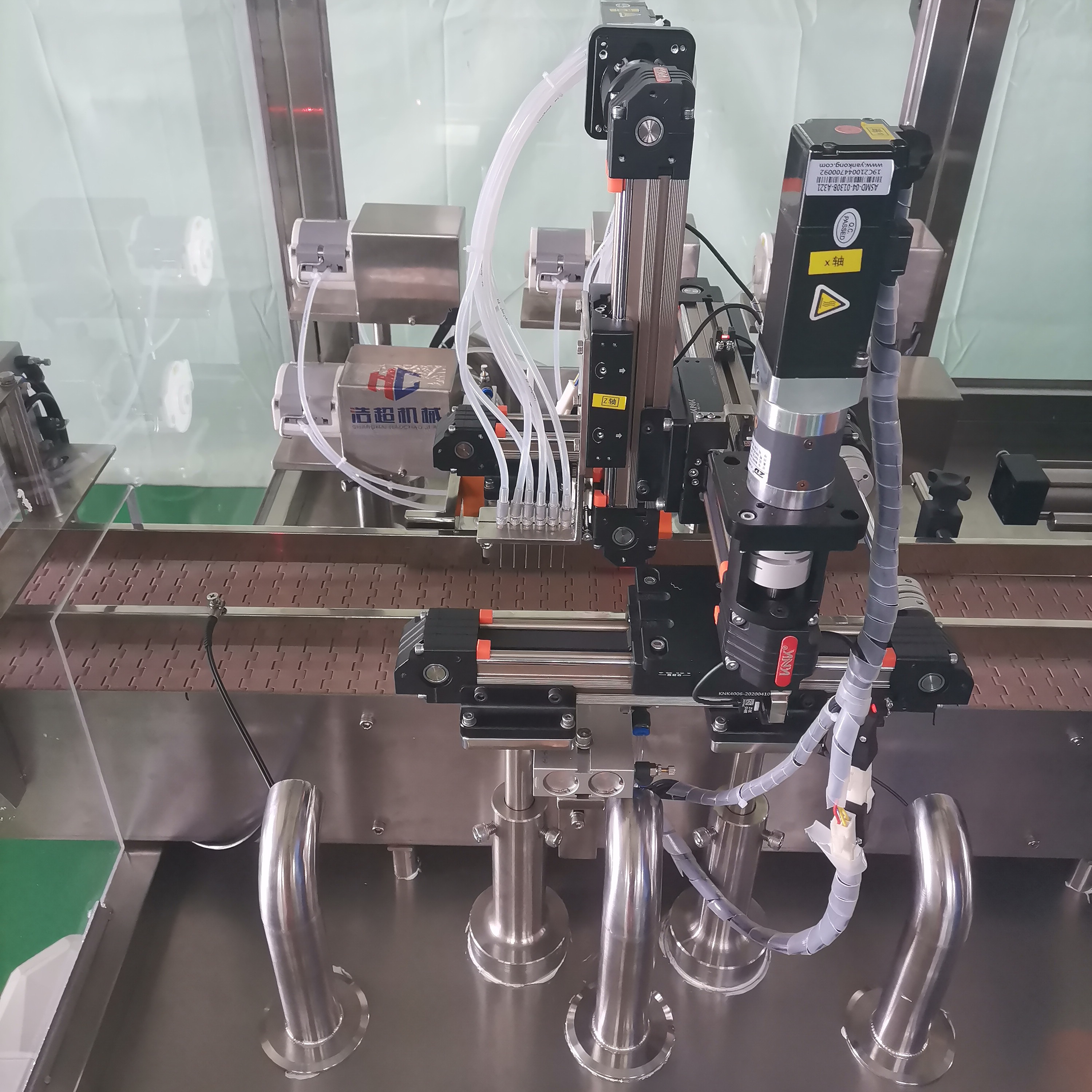 本設備是根據(jù)客戶的樣品非標定制的六頭深孔板灌裝機,采用蠕動泵計量灌裝,觸控屏控制,人機界面設定,操作直觀方便、PLC控制,定位式貼膜,加熱式封口,保證封口的牢固、美觀。該設備具定位準確,灌裝精度高,傳動平穩(wěn),結構緊湊、合理,操作簡單等優(yōu)點。符合GMP要求。