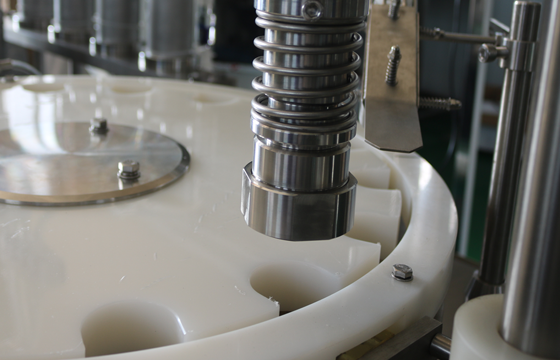 本機為10-20ML的口服液灌裝封口而設計,是口服液灌裝生產(chǎn)線中的灌裝主機,用于易拉直管瓶的灌裝、上蓋、封口。采用注射泵灌裝,電磁振動自動送蓋,三刀離心式軋蓋(或旋蓋),具有無瓶不灌裝的功能。該機灌裝和封口合二為一,設計合理,結構緊湊,易于操作與維護,符合GMP標準。
