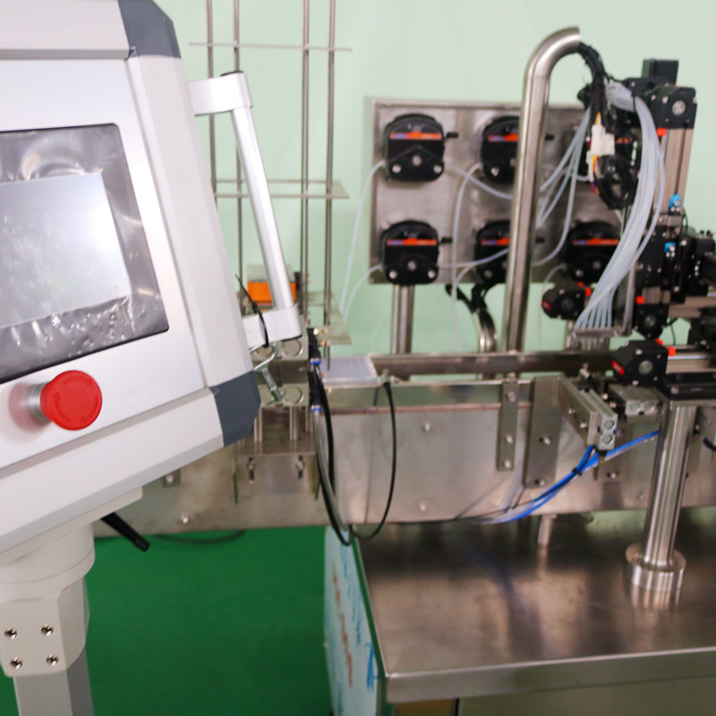 簡要描述:本設(shè)備是根據(jù)客戶的樣品非標(biāo)定制的六頭深孔板灌裝機,采用蠕動泵計量灌裝,觸控屏控制,人機界面設(shè)定,操作直觀方便、PLC控制,定位式貼膜,加熱式封口,保證封口的牢固、美觀。該設(shè)備具定位準(zhǔn)確,灌裝精度高,傳動平穩(wěn),結(jié)構(gòu)緊湊、合理,操作簡單等優(yōu)點。符合GMP要求。