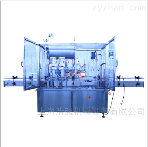 該機灌裝和旋(軋)蓋合二為一,設(shè)計合理,結(jié)構(gòu)緊湊,符合GMP標(biāo)準(zhǔn)。電氣元件采用品牌。本機操作直觀方便,無瓶不灌裝。全自動旋(軋)蓋,保證封口的牢固、美觀。