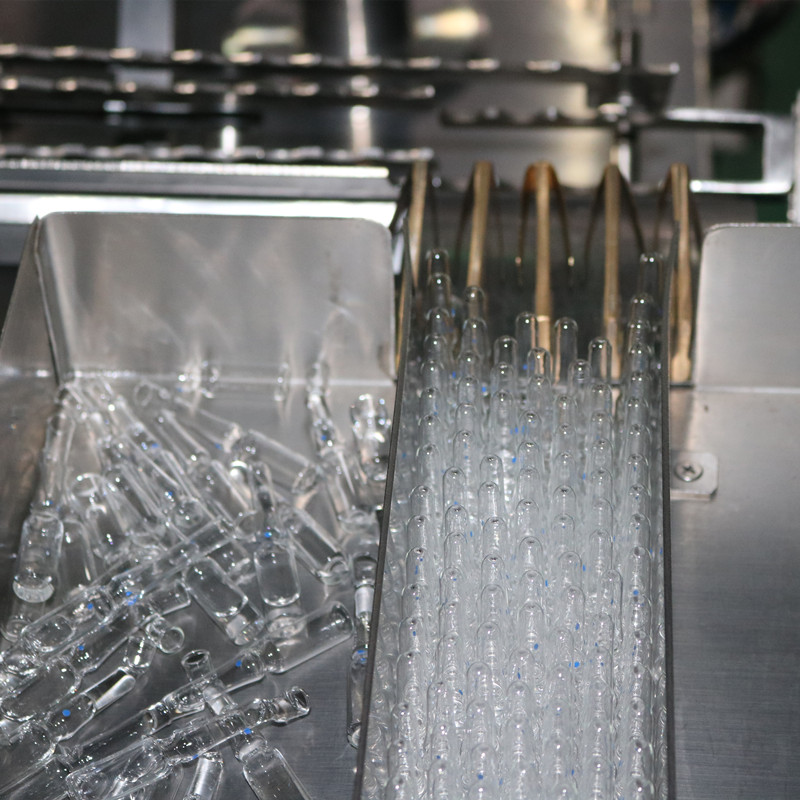 本產品是我公司為滿足客戶的特殊需要所定制的一款設備,它除了繼承舊款安瓿拉絲灌封機的功能和特點外,還大限度地提高了整機的通用性能:只需很少的更換件即可很方便地實現(xiàn)1-5ml安瓿的灌封;另外智能化的控制、輸送鏈、手輪離合裝置以及封閉的外型設計,用戶在調試和生產過程中感覺非常方便、安全。