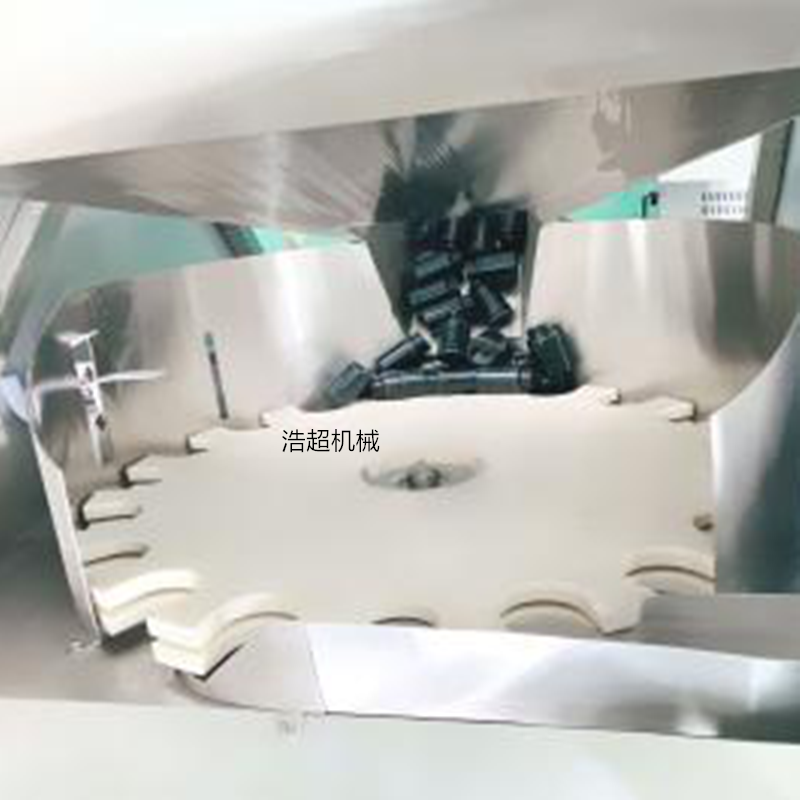 旋轉(zhuǎn)花盤會將瓶子扶正并且有序的送入傳送帶