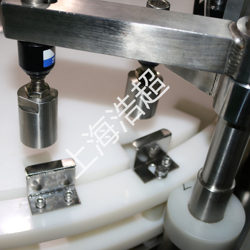 由輸送線送瓶進(jìn)行灌裝、上內(nèi)塞、軋蓋、外蓋、旋壓蓋等主要部分組成。通過(guò)全自動(dòng)理瓶機(jī)或供瓶機(jī)把瓶子輸送到光眼檢測(cè)處,然后進(jìn)行灌裝,震蕩盤(pán)理蓋上蓋后旋蓋,工序完成后可加貼標(biāo)機(jī)、打碼機(jī),再送出到收瓶機(jī)。