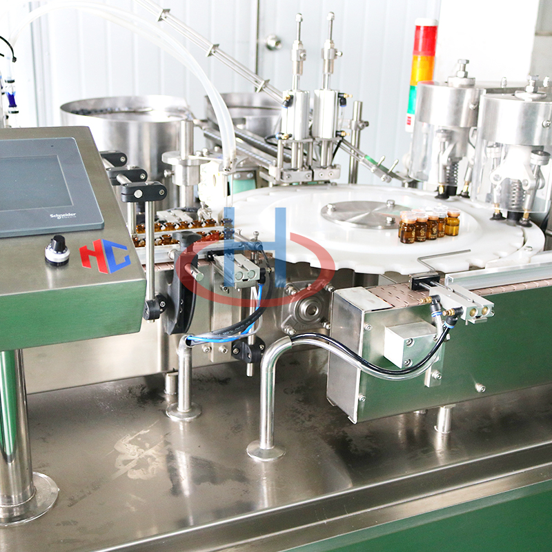 本機是一款用于西林瓶的灌裝、上塞、旋(軋)蓋機。本機采用封閉式凸輪分度工位器,精度高,運行可靠,使用壽命長。該分度器結(jié)構(gòu)簡單,長期使用無需維修。設(shè)備適用于各種小劑量液體的灌裝、壓塞及旋(軋)蓋,如精油等。廣泛用于食品、制藥、化工行業(yè)及科研領(lǐng)域。該機既可單機生產(chǎn),又可與洗瓶機、干燥機等設(shè)備組成聯(lián)動生產(chǎn)線。符合GMP要求。