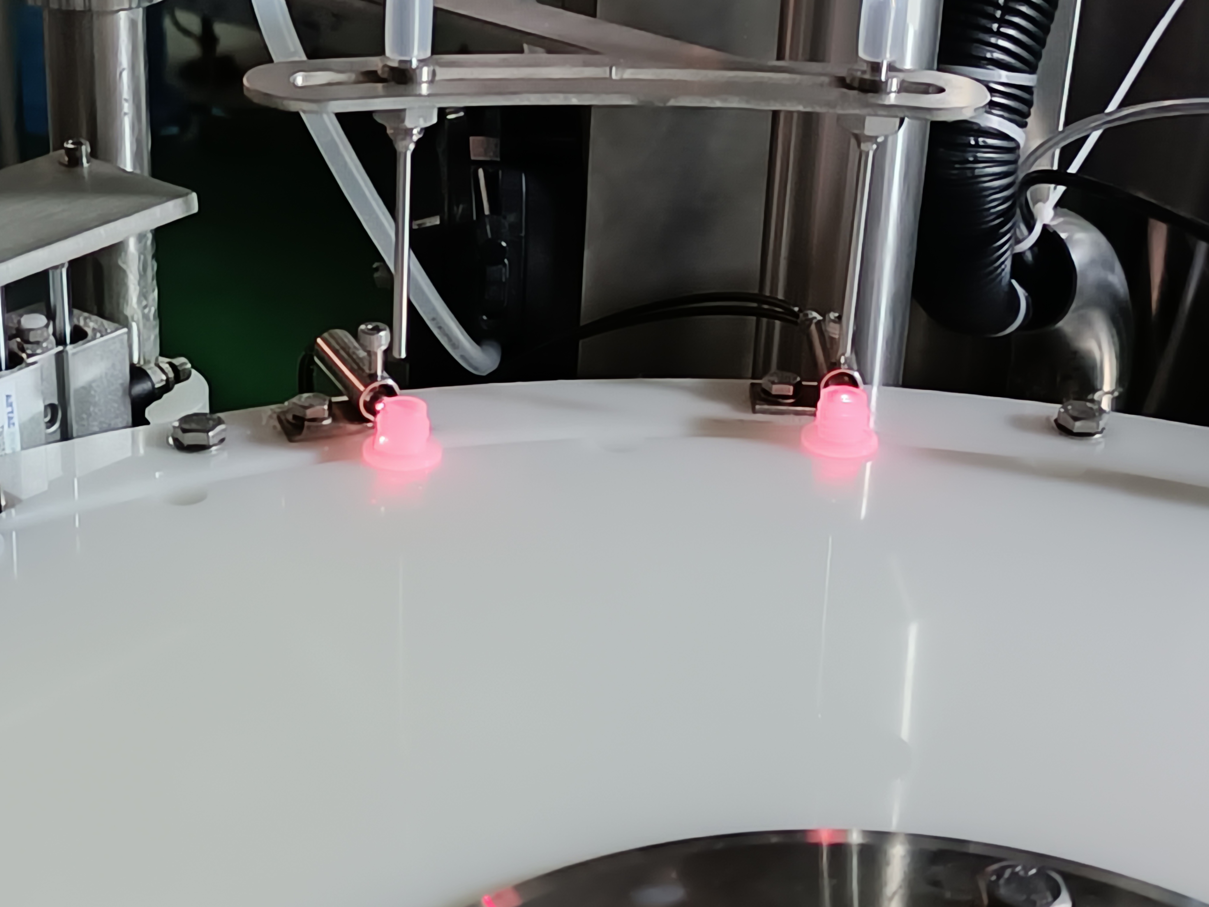 試劑灌裝機工作流程:通過螺桿把包材送到主機卡位上,然后光標檢測定量灌裝,充填后會定位進行上蓋、下蓋,再進行旋蓋。后通過機械手或者推桿把包裝后成品推出盛料處。