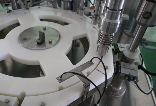 工作流程:該機(jī)通過螺桿把包材送到主機(jī)卡位上,然后光標(biāo)檢測(cè)定量灌裝,充填后會(huì)定位進(jìn)行上蓋、下蓋,再進(jìn)行旋蓋。后通過機(jī)械手或者推桿把包裝后成品推出盛料處。