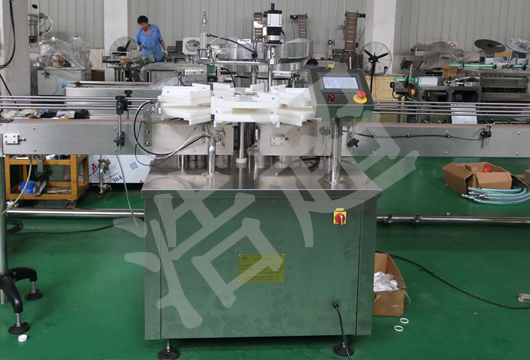 本機(jī)是由我公司為客戶量身定制的一款用于口服液和糖漿的灌裝、上塞、旋(軋)蓋機(jī)。本機(jī)采用封閉式凸輪分度工位器,精度高,運(yùn)行可靠,使用壽命長(zhǎng)。該分度器結(jié)構(gòu)簡(jiǎn)單,長(zhǎng)期使用無(wú)需維修。