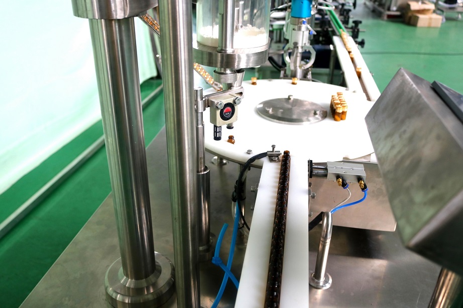 全自動(dòng)粉劑灌裝壓塞旋蓋機(jī)適用于各種粉劑灌裝、壓塞及旋(軋)蓋,如青霉素粉末、冰硼散粉末、農(nóng)藥粉末、胡椒粉末等。廣泛用于食品、制藥、化工行業(yè)及科研領(lǐng)域。符合GMP要求。