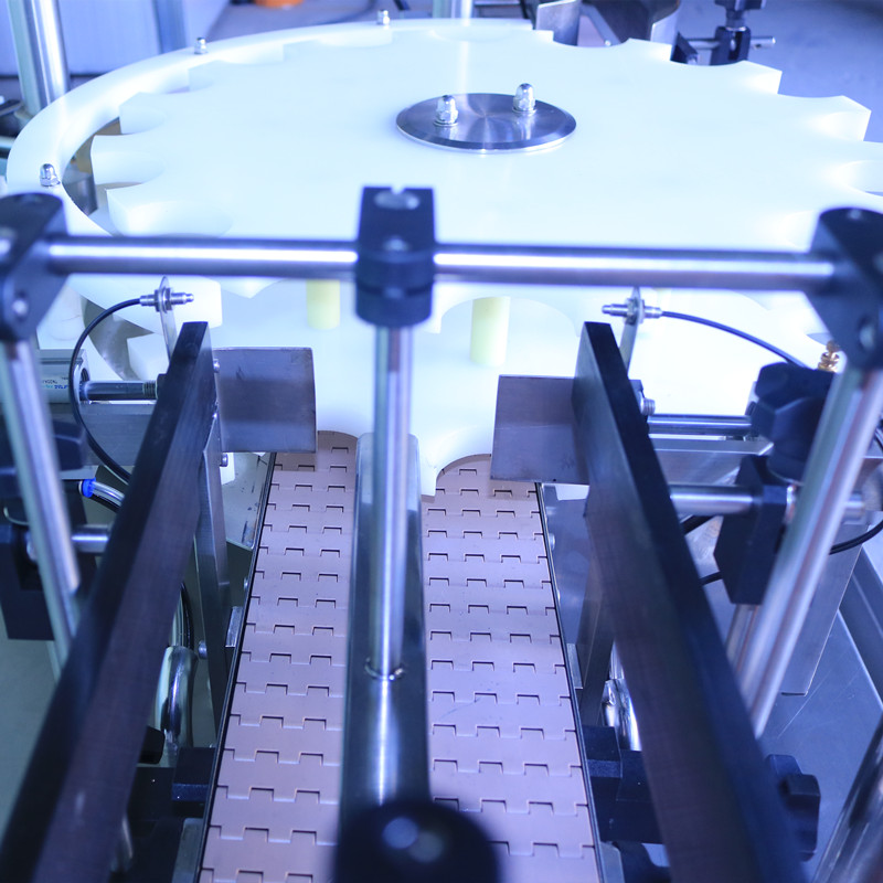 本機(jī)是采用磨擦式旋蓋形式,調(diào)節(jié)方便,旋蓋速度可根據(jù)用戶產(chǎn)量任意調(diào)節(jié),比爪式旋蓋機(jī)提高工作效率三倍。本機(jī)設(shè)計(jì)合理,結(jié)構(gòu)緊湊,旋蓋效率高,瓶蓋不打滑破損,瓶體不拉毛,穩(wěn)定可靠,使用壽命長(zhǎng),操作簡(jiǎn)單、維修方便。符合GMP要求。廣泛適用于醫(yī)藥、食品、化工等行業(yè)。