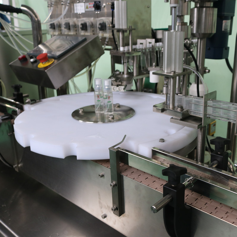 本機(jī)是用于噴霧劑灌裝的設(shè)備。適用各種材質(zhì)圓形、異形瓶,各種規(guī)格噴頭的灌裝旋(軋)蓋。不銹鋼活塞泵定量灌裝、氣動(dòng)上蓋、升降式旋蓋。具有灌裝計(jì)量準(zhǔn)確、旋蓋平穩(wěn)、操作簡(jiǎn)單等優(yōu)點(diǎn)。