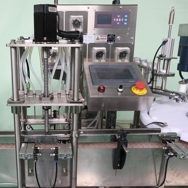 本機是用于噴霧劑灌裝的設(shè)備。適用各種材質(zhì)圓形、異形瓶,各種規(guī)格噴頭的灌裝旋(軋)蓋。不銹鋼活塞泵定量灌裝、氣動上蓋、升降式旋蓋。具有灌裝計量準(zhǔn)確、旋蓋平穩(wěn)、操作簡單等優(yōu)點。