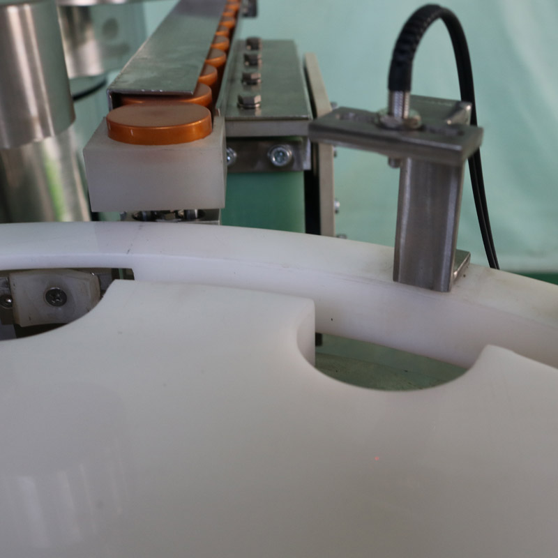全自動(dòng)旋蓋機(jī)是采用磨擦式旋蓋形式,調(diào)節(jié)方便,旋蓋速度可根據(jù)用戶產(chǎn)量任意調(diào)節(jié),比爪式旋蓋機(jī)提高工作效率三倍。本機(jī)設(shè)計(jì)合理,結(jié)構(gòu)緊湊,旋蓋效率高,瓶蓋不打滑破損,瓶體不拉毛,穩(wěn)定可靠,使用壽命長(zhǎng),操作簡(jiǎn)單、維修方便。符合GMP要求。廣泛適用于醫(yī)藥、食品、化工等行業(yè)。