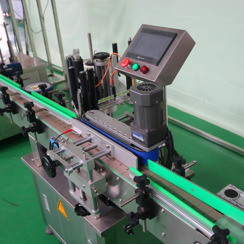 本機用于各種圓瓶或方形瓶子的表面貼標(biāo),貼標(biāo)過程穩(wěn)定可靠,能使瓶子側(cè)面所貼的不干膠標(biāo)簽平整,且打上清晰的生產(chǎn)日期, 生產(chǎn)批號(打碼機為熱碼打印,字?jǐn)?shù)三排)。