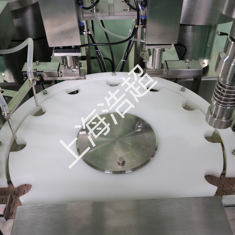 本機(jī)適用于2-30ML各種材質(zhì)的圓形扁形塑料或玻璃瓶的精油灌裝.本機(jī)由高精度凸輪分度機(jī)構(gòu)提供分度等分盤(pán)定位上塞上蓋;加速度凸輪傳動(dòng)提供旋蓋頭的升降;恒扭矩旋蓋;蠕動(dòng)泵計(jì)量灌裝;觸摸屏控制.無(wú)瓶不灌裝,不加內(nèi)塞,外蓋.具定位準(zhǔn)確,傳動(dòng)平穩(wěn),保護(hù)瓶蓋,計(jì)量準(zhǔn)確.操作簡(jiǎn)單等優(yōu)點(diǎn)。