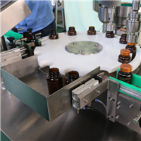 全自動(dòng)封口機(jī) 旋蓋機(jī)特點(diǎn):本機(jī)是采用磨擦式旋蓋形式,調(diào)節(jié)方便,旋蓋速度可根據(jù)用戶產(chǎn)量任意調(diào)節(jié),比爪式旋蓋機(jī)提高工作效率三倍。本機(jī)設(shè)計(jì)合理,結(jié)構(gòu)緊湊,旋蓋效率高,瓶蓋不打滑破損,瓶體不拉毛,穩(wěn)定可靠,使用壽命長(zhǎng),操作簡(jiǎn)單、維修方便。符合GMP要求。廣泛適用于醫(yī)藥、食品、化工等行業(yè)。