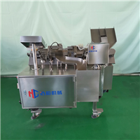 輸送瓶機(jī)構(gòu)送瓶軌道上的擋瓶氣缸將由上道設(shè)備傳送過來的瓶子,擋在裝填干燥劑的位置,等待裝填干燥劑,瓶口對(duì)準(zhǔn)剪斷機(jī)構(gòu)。步進(jìn)電機(jī)驅(qū)動(dòng)送袋機(jī)構(gòu),將干燥劑袋從干燥劑袋盤架拉出,色標(biāo)傳感器檢測(cè)干燥劑袋并控制袋長度,剪刀將干燥劑袋剪斷,裝入瓶內(nèi),輸送瓶機(jī)構(gòu)的傳送帶將已裝入的干燥劑的藥瓶輸送給下一道設(shè)備,同時(shí),待裝干燥劑的藥瓶補(bǔ)充到裝填干燥劑袋的位置。