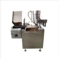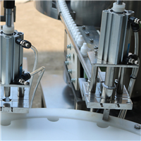 適用于2-30ML各種材質(zhì)的圓形扁形塑料或玻璃瓶的精油灌裝.本機(jī)由凸輪分度機(jī)構(gòu)提供分度等分盤定位上塞上蓋;加速度凸輪傳動(dòng)提供旋蓋頭的升降;恒扭矩旋蓋;蠕動(dòng)泵計(jì)量灌裝;觸摸屏控制.無瓶不灌裝,不加內(nèi)塞,外蓋.具定位準(zhǔn)確,傳動(dòng)平穩(wěn),保護(hù)瓶蓋,計(jì)量準(zhǔn)確.操作簡單等優(yōu)點(diǎn)。