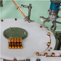 液體灌裝機(jī) 西林瓶半加塞特點(diǎn): 1、人機(jī)界面設(shè)定、操作直觀方便、PLC控制,裝量準(zhǔn)?! ?、變頻控制、生產(chǎn)速度任意調(diào)節(jié)、自動(dòng)計(jì)數(shù)?! ?、自動(dòng)停機(jī)功能,無瓶不灌裝。 4、圓盤定位式灌裝,穩(wěn)定可靠?! ?、高精度凸輪分度計(jì)控制,定位準(zhǔn)?! ?、采用SUS304及316L不銹鋼制造,符合GMP要求。