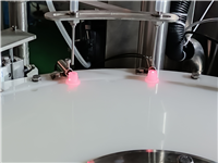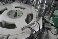 • 標配定量試劑灌裝機 工作流程:該機通過人工或設備自動把包材送到主機卡位上,然后光標檢測定量灌裝,充填后會定位進行上蓋、下蓋,再進行旋蓋。